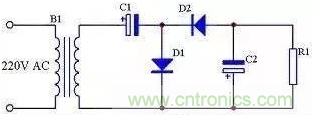 二倍壓整流電路還有另外一種形式的畫法,見圖15,其原理與圖12完全一致,只是表現(xiàn)形式不一樣。