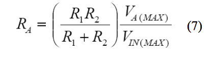 為了找到一個 RA值以允許最大失調(diào)調(diào)整范圍 VIN(MAX),在給定調(diào)整電壓范圍 VA(MAX)的情況下,使 VOUT = 0,求 RA,結(jié)果得到