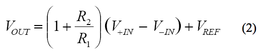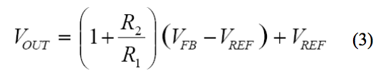 由于輸入之間的電壓等于反饋(FB)與參考(REF)端子之間的電壓時,放大器的反饋要求可得到滿足,因此,我們可將該公式重寫為