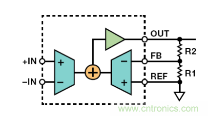間接電流反饋(ICF)儀表放大器(如AD8237和AD8420)可在放大之前移除失調(diào)。圖 3 顯示ICF拓?fù)浣Y(jié)構(gòu)原理圖。