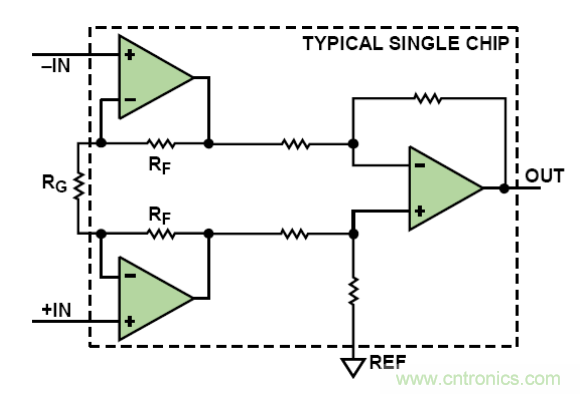 圖2 三運放儀表放大器拓?fù)浣Y(jié)構(gòu)