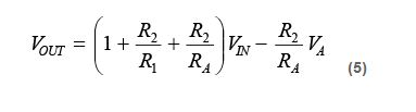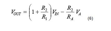 如果相對于原始等式中的 VREF 取 VOUT 和 VA,則可得到相同的結(jié)果。VA(MAX) – VREF 也應(yīng)替換等式(7)中的 VA(MAX)。
