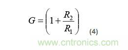 據(jù)等式(3),R1 與 R2 之比將增益設(shè)為: