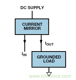 采用基本電流鏡和電流源,則輸入和輸出電流極性相同。通常,輸出晶體管的射極/源極直接或通過檢測電阻接地,且輸出電流從集電極/漏極流入負載,其他端子連接直流電源。這樣做并非總是很方便,尤其當負載的一個端子需接地時。如圖 7 所示,若電路采用其直流電源的射極/源極來構(gòu)建,則不存在此問題。