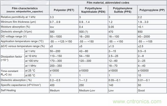 表1比較了常用薄膜電容器類型的特性。聚酯類可在低電壓下使用,而聚丙烯由于其低損耗因數(shù)(DF)和單位厚度的高介電擊穿能力,因此通常在高應力下表現(xiàn)出最低的損耗和最高的可靠性。DF相對比較穩(wěn)定,不隨溫度和頻率有很大變化。 分段高結(jié)晶金屬化聚丙烯也可采用,并且能提供與鋁電解電容相當?shù)哪芰棵芏取?/div>