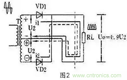 全波整流則是要用到二個二極管,ASEMI工程上也會要求需要有帶中心抽頭的兩個次級線圈,這兩個次級線圈需要圈數(shù)相同,以保證相同的電阻。詳細的情況我們可以看下圖2,負載RL得到的就是全波整流電流,輸出電壓比半波整流電路要高。