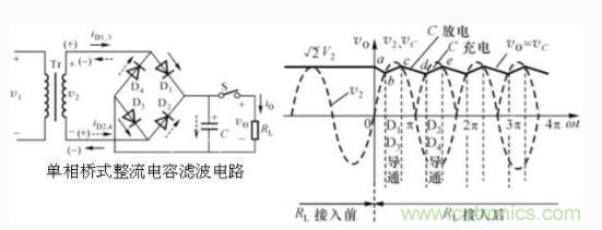 1)電容濾波,負(fù)載開(kāi)路時(shí)