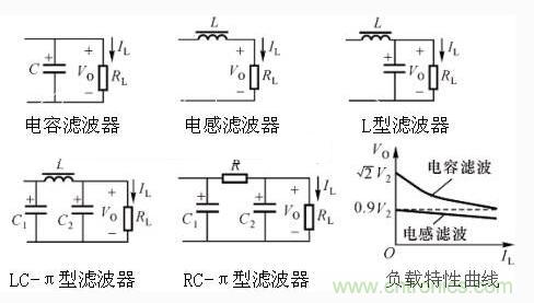 為確保二極管安全工作,要求:不同電子設(shè)備要求其電源電壓的平滑程度不同,為此可采用不同的濾波電路。常見(jiàn)的有電容濾波、電感濾波和復(fù)式濾波電路(兩個(gè)或兩個(gè)以上濾波元件組成)。