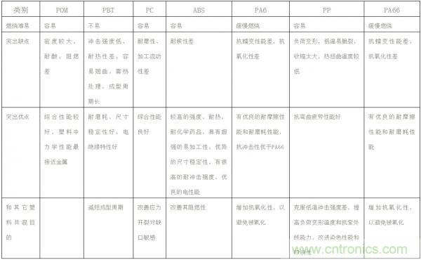 常用的材質(zhì)主要有PA6、PA66、ABS、PBT、pp等,筆者總結(jié)了它們的具體性能差異,見表2。設(shè)計插件時可根據(jù)不同的需求選擇不同的材質(zhì),還可根據(jù)實(shí)際情況在塑料中添加阻燃或增強(qiáng)材料,以達(dá)到增強(qiáng)或阻燃的目的,如添加玻璃纖維增強(qiáng)等。