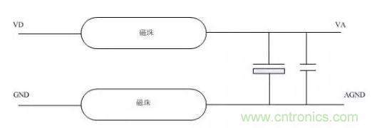 記得在剛學習DSP設計時,師傅在DSP模擬部分應用是推薦一個電路,就是在數(shù)字電源和模擬電源上串兩個磁珠,然后加上濾波電容就OK了,很長一段時間,都奉為經(jīng)典,直到接觸EMC設計時,才發(fā)現(xiàn)錯的有多厲害,也明白了當時的一些問題的癥結所在。