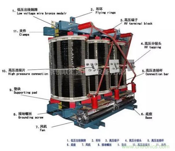 2、環(huán)氧樹(shù)脂澆注絕緣的三相干式電力變壓器: