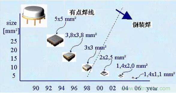 2)改進器件的封裝形式,現(xiàn)在已經(jīng)由傳統(tǒng)的圓形金屬殼封裝改為方形或長方形扁平金屬封裝或LCCC(無引線陶瓷芯片載體)表面貼裝的形式,采用體積更小的CSP封裝形式,目前封裝尺寸已做到1.1mm x 0.9mm;