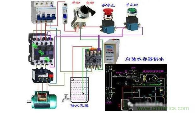 自動(dòng)控制由傳感器和控制執(zhí)行機(jī)構(gòu)組成。液位控制器的傳感器一般是導(dǎo)線。利用水的導(dǎo)電性。水的導(dǎo)電性較差,不能直接驅(qū)動(dòng)繼電器。所以要有電子線路將電流放大,以推動(dòng)繼電器工作。繼電器就是執(zhí)行機(jī)構(gòu)。