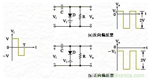 【導(dǎo)讀】所謂鉗位,就是把輸入電壓變成峰值鉗制在某一預(yù)定的電平上的輸出電壓,而不改變信號。鉗位電路的功能:將輸入訊號的位準(zhǔn)予以上移或下移,并不改變輸入訊號的波形。