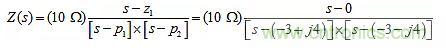 當s=0時,其值為零;當s=-3±j4時,它具有復共軛極點對。可以用根來表達它,即: