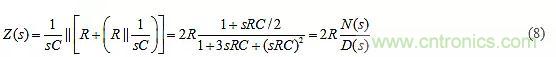 為簡單起見,假設圖8a的RC對完全相同。可以看出,無論我們怎樣選擇元件值,該電路的極點將始終為負實數(shù)。