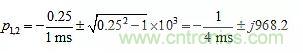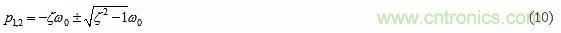 其中ζ稱為阻尼比,ω0稱為無阻尼固有頻率。設D(s)=0,可以得到極點對: