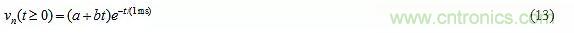 比較公式(8)和(9),我們發(fā)現(xiàn)圖8a的電路具有:ζ=1.5和ω0=1/(RC)=1/(1ms)。代入公式(10)得到極點對p1=-1/(0.3818ms),p2=-1/(2.618ms),表示vn(t)由一對指數(shù)衰減組成,因為電阻消耗了存儲在電容中的電能。