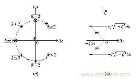 圖10:(a)作為k的函數(shù)的根軌跡(b)在阻尼響應狀態(tài)下的極點對。