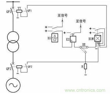 再有,連接片XE也可接至電阻R,使重瓦斯保護(hù)不投跳閘而只發(fā)信號(hào)。