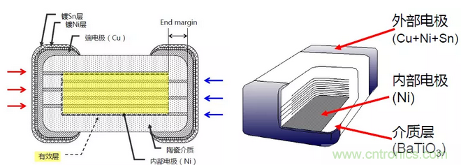 陶瓷電容器結(jié)構(gòu)如下圖所示: