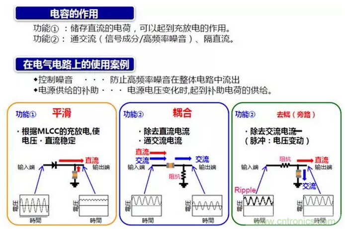 如下圖所示,電容主要有兩大功能,儲(chǔ)能和濾波。