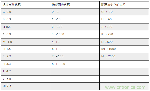 根據(jù)上面的表可以看出,一個“NP0”電容和“C0G”電容的漂移都為0,容差都為±30 ppm/K;一個“N1500” 電容和“P3K”電容的漂移都為−1500ppm/K,最大容差都為±250 ppm/°C。
