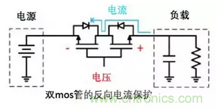 如下所示,利用2個MOS管背靠背地連接是一個不錯的解決方案。當2個MOS管關(guān)閉,它們可以阻斷兩個方向電流的流通。與二極管的解決方案相比,MOS管可以支持更低的電源壓降供應(yīng)給負載。但是,如果要實現(xiàn)這種方案,需要多個元器件配合,使得電路會在電路板上占用更多的空間。