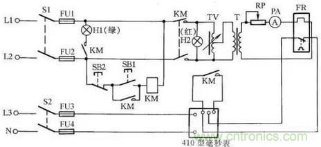 圖18所示是自制的絕緣檢測(cè)器線路,它既可用作線路絕緣監(jiān)視,又可代替兆歐表檢查電機(jī)、測(cè)電器的絕緣電阻。當(dāng)合上隔離開(kāi)關(guān)QS,在相電壓作用下,整個(gè)繞組和接地外殼之間的泄漏電流流過(guò)絕緣層和電阻R1、R2。
