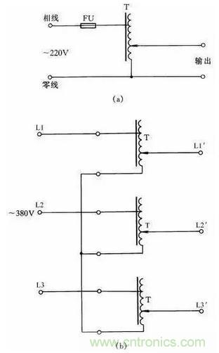 單相自耦調(diào)壓器在工廠等應(yīng)用極為廣泛。其接線線路如圖35(a)所示。