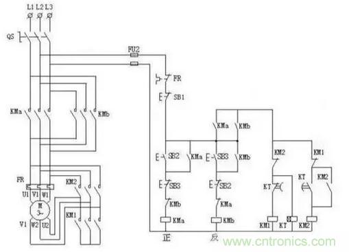 星三角我上圖分析過了,控制電機正反轉也分析過了。兩圖合一就是這個圖了,喜歡的朋友可以自己學著分析一下。