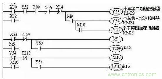 根據(jù)主電路中控制負(fù)載的控制電器的主觸點文字符號,在PLC的I/O接線圖中找出控制該負(fù)載的接觸器線圈的輸出繼電器,再在梯形圖和指令語句表中找出控制該輸出繼電器的線圈及其相關(guān)電路,這就是控制該負(fù)載的局部電路。