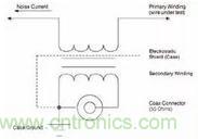 射頻電流探頭是一個(gè)初級(jí)類型為插入式的射頻電流變壓器。即,當(dāng)我們將探頭夾在待測電流流經(jīng)的導(dǎo)線或者電纜上的時(shí)候,這些導(dǎo)體就構(gòu)成了變壓器的初級(jí)線圈。這種探頭的夾合特性使得它很容易被安置在任意導(dǎo)體或者電纜的四周。其本質(zhì)就是一個(gè)寬帶的高頻變壓器。利用電流探頭,可以在不對電路造成物理影響的情況下,實(shí)現(xiàn)對電纜上的高頻電流的測量。既然打算將電流探頭夾合在導(dǎo)線上,那么如圖2 所示的變壓器初級(jí)實(shí)際上就是待測共模電流流過的電導(dǎo)體本身。另外,因?yàn)楣材k娏鞅徽J(rèn)為是流過導(dǎo)體后,再經(jīng)過回流導(dǎo)體(例如:框架,共地面或者接地)返回到電源的,所以這個(gè)變壓器的初級(jí)線圈通常被認(rèn)為只有一匝。在某些電流探頭的模型中,次級(jí)輸出端內(nèi)部接的是阻性負(fù)載,這樣可以在一個(gè)很寬的頻率范圍內(nèi)提供非常穩(wěn)定的轉(zhuǎn)移阻抗。