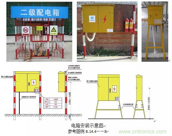 1、配電箱、開關(guān)箱應(yīng)裝設(shè)在干燥通風(fēng)及常溫場所。(JGJ46-2005第8.1.5條)