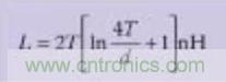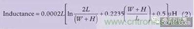 帶狀電感是另外一種需要考慮的寄生效應(yīng),它是由于印制線過(guò)長(zhǎng)或缺乏接地平面引起的。(公式二)顯示出計(jì)算印制線電感(Inductance)的公式??蓞⒖?圖六)。
