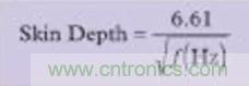 在高頻段,必須考慮一種稱為趨膚效應(yīng)的現(xiàn)象。趨膚效應(yīng)會(huì)引起電流流向?qū)Ь€的外表面,結(jié)果會(huì)使得導(dǎo)線的橫截面變窄,因此使直流(DC)電阻增大。雖然趨膚效應(yīng)超出了本文討論的范圍,這里還是給出銅線中趨膚深度(Skin Depth)的一個(gè)很好的近似公式(以cm為單位):