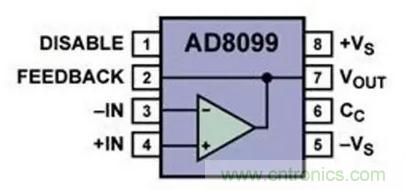 採(cǎi)用低失真引腳排列的一些運(yùn)算放大器,有助于消除上面提及的兩個(gè)問(wèn)題;而且它還提高了其他兩個(gè)重要方面的性能。LFCSP的低失真引腳排列,如(圖十)所示,將傳統(tǒng)運(yùn)算放大器的引腳排列按著逆時(shí)針?lè)较蛞苿?dòng)一個(gè)引腳,并且增加了一個(gè)輸出引腳作為專用的反饋引腳。