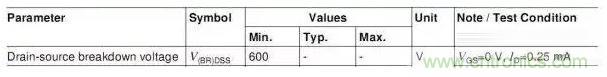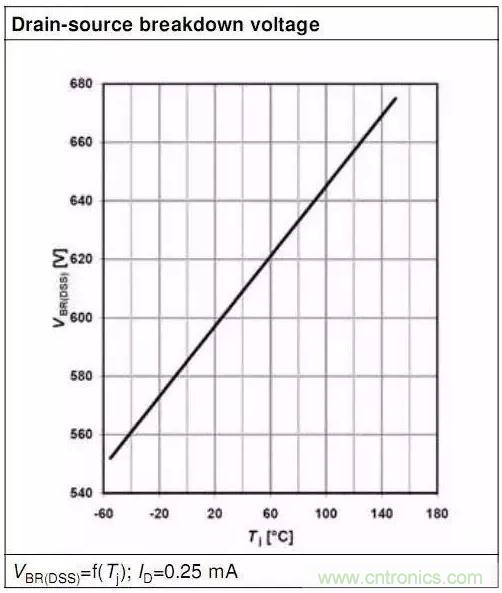 這個參數(shù)是有條件的,這個最小值600V是在Tj=25℃的值,也就是只有在Tj=25℃時,MOSFET上電壓不超過600V才算是工作在安全狀態(tài)。