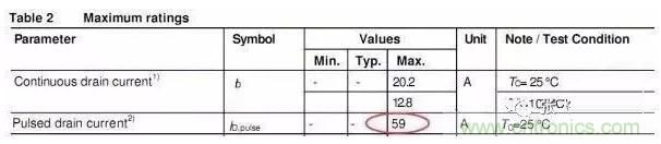 此部分為MOSFET的最大脈沖電流限制,此最大電流對應(yīng)ID_pulse.
