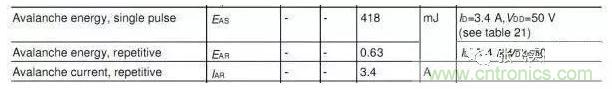 EAS:單次雪崩能量,EAR:重復(fù)雪崩能量,IAR:重復(fù)雪崩電流