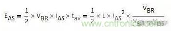 上圖是典型的單次雪崩VDS,ID波形,對應(yīng)的單次雪崩能量為: