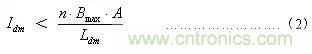 盡管少量的差模電感非常有用,但太大的差模電感可以使扼流圈發(fā)生磁飽和??筛鶕?jù)公式(2)作簡單計(jì)算來避免磁飽和現(xiàn)象的發(fā)生。