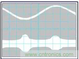 圖1:示波器上顯示的由于60Hz充電電流引起的共模扼流圈的降級(jí)