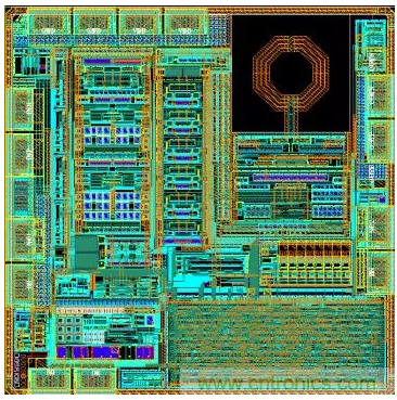 射頻無線模塊或者獨立的射頻芯片,從電路設計到版圖設計,完全屬于全定制設計方式。設計人員在標準版圖設計和半定制版圖設計的基礎上,不斷開發(fā)出專用的芯片射頻產品。圖6為某射頻公司自行設計的5GHz通信產品全定制版圖案例,即版圖為全手工設計,芯片制造采用180nm射頻工藝,其數據率達到5Gbps。