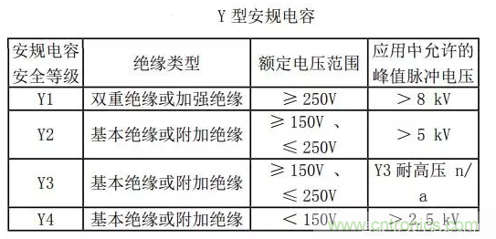 Y型安規(guī)電容安全等級:Y1≥250V,允許峰值脈沖電壓>8KV;150V≤Y2≤300V,允許峰值脈沖電壓>5KV,Y4<150V,允許峰值脈沖電壓>2.5KV