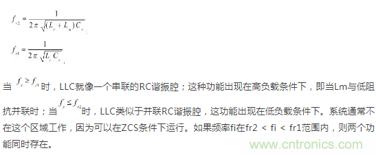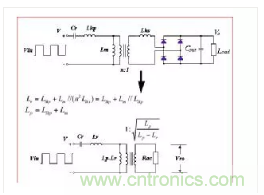 此外,如果MOSFET的寄生輸出電容C1和C2與Cr的容值相當(dāng),則諧振頻率fr也會(huì)受到器件的影響。正是由于這個(gè)原因,在設(shè)計(jì)過(guò)程中,選擇Cr值大于C1和C2,可以解決這個(gè)問題,使fr值不受所用器件的影響。