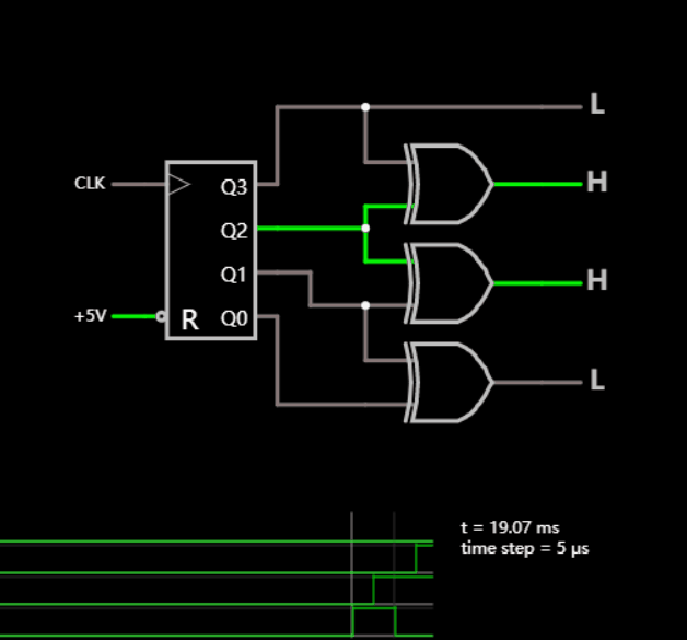 該電路以格雷碼進(jìn)行計(jì)數(shù),這是一種二進(jìn)制計(jì)數(shù)系統(tǒng),每次更新計(jì)數(shù)時,只有一位數(shù)字發(fā)生變化。
