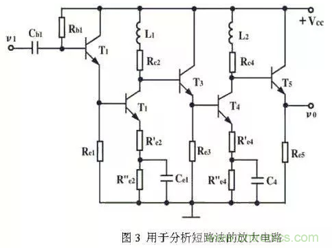 用同一臺(tái)測(cè)量?jī)x器進(jìn)行測(cè)量時(shí),測(cè)量點(diǎn)不同,儀器內(nèi)阻引進(jìn)的誤差大小將不同。例如,對(duì)于圖1所示電路,測(cè)C1點(diǎn)電壓VC1時(shí),若選擇e2為測(cè)量點(diǎn),測(cè)得VE2,根據(jù)VCl=VE2+VBE2求得的結(jié)果,可能比直接測(cè)Cl點(diǎn)得到的VC1的誤差要小得多。所以,出現(xiàn)這種情況,是因?yàn)镽e2較小,儀器內(nèi)阻引進(jìn)的測(cè)量誤差小。