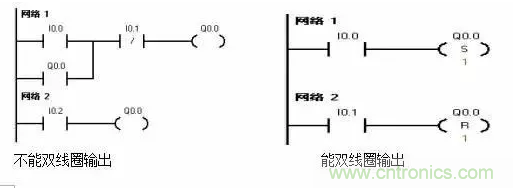 (2)梯形圖中同一編號的“繼電器線圈”只能出現(xiàn)一次,通常不能出現(xiàn),但是它的觸點可以無限次地重復(fù)使用。