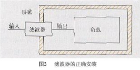 b.濾波器的輸入和輸出線必須分開,防止輸入端與輸出端線路耦合,降低濾波特性,通常利用隔板或底盤來(lái)固定濾波器。若不能實(shí)施隔離方法,則采用屏蔽引線。